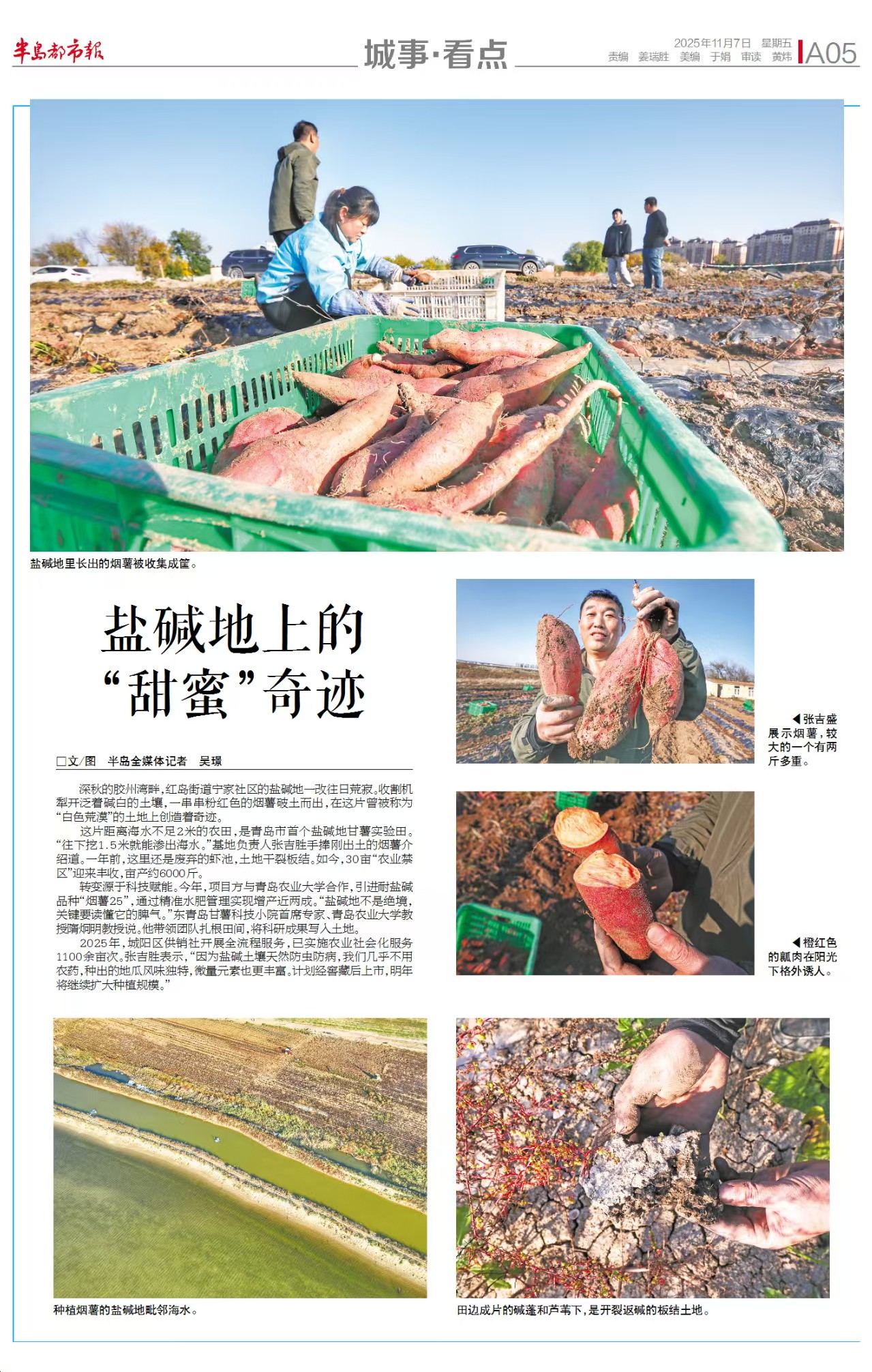 【编者按】11月6日,半岛新闻以《盐碱地上的“甜蜜”》为题,报道了taptap点点体彩app下载“科技小院”提供技术支持,让盐碱地成为甘薯丰收田,为盐碱土地的开发提供了有利的参考。