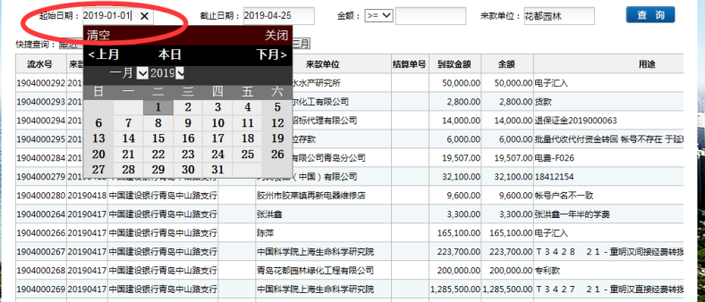 系统默认“起始日期”为2019.01.01。如果来款时间在2019.01.01日前,需要修改“起始日期”。