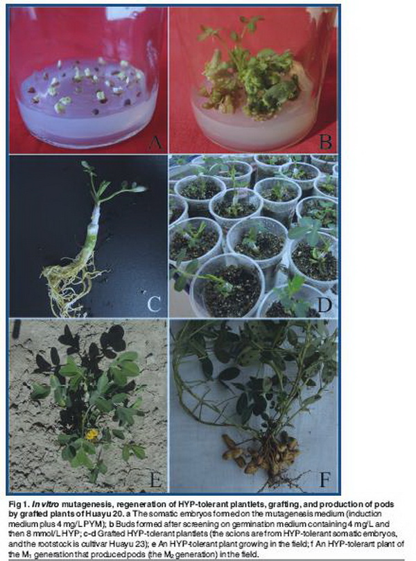 Generationof peanutdroughttolerantplantsby pingyangmycin-mediated in vitro mutagenesis and hydroxyproline-resistance screening. (PLoS One.2015, 31;10(3):e0119240).