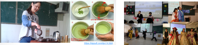 亲手实践,体验异文化,对比中日文化。茶道、花道、书道。社团活动、技能大赛等形式丰富,日剧配音、演剧、演讲、作文大赛等