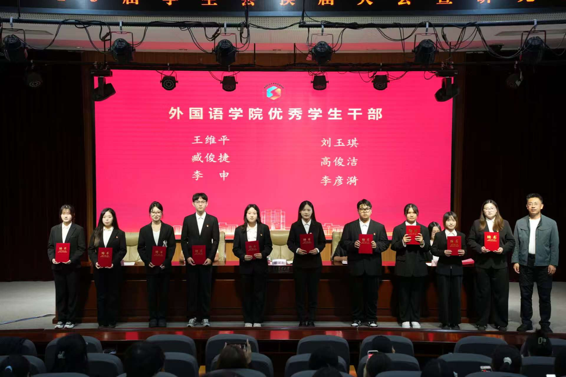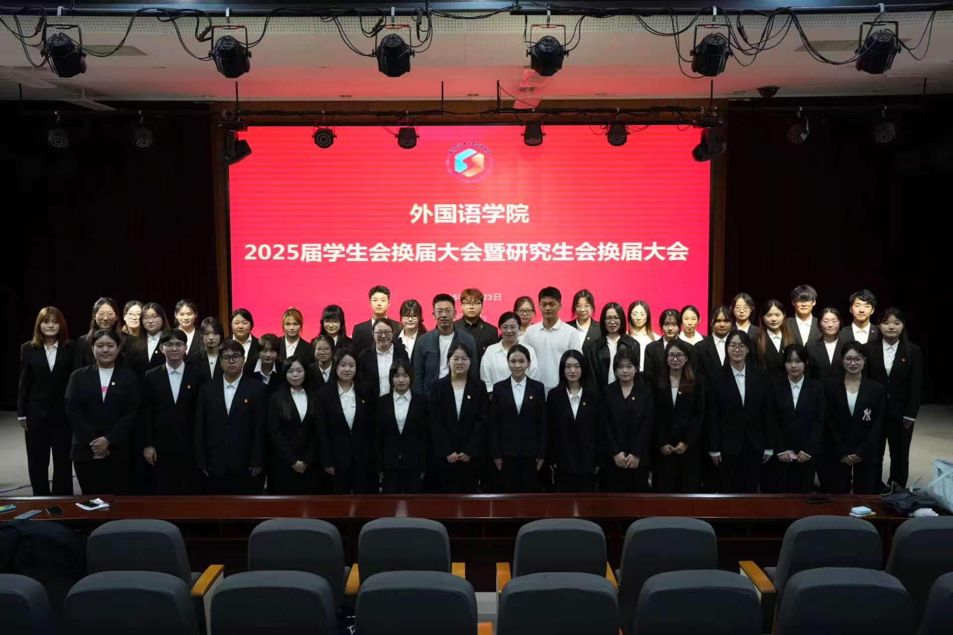 9月23日,外国语学院于学术会馆第二报告厅召开2025届学生会暨研究生会换届大会。外国语学院党委副书记、副院长盛金玉,团委书记线郁,辅导员王洋洋、邹晓婷、张玉灵出席大会。2024届、2025届学生会和研究生会、2024级全体学生骨干参加,大会由线郁主持。