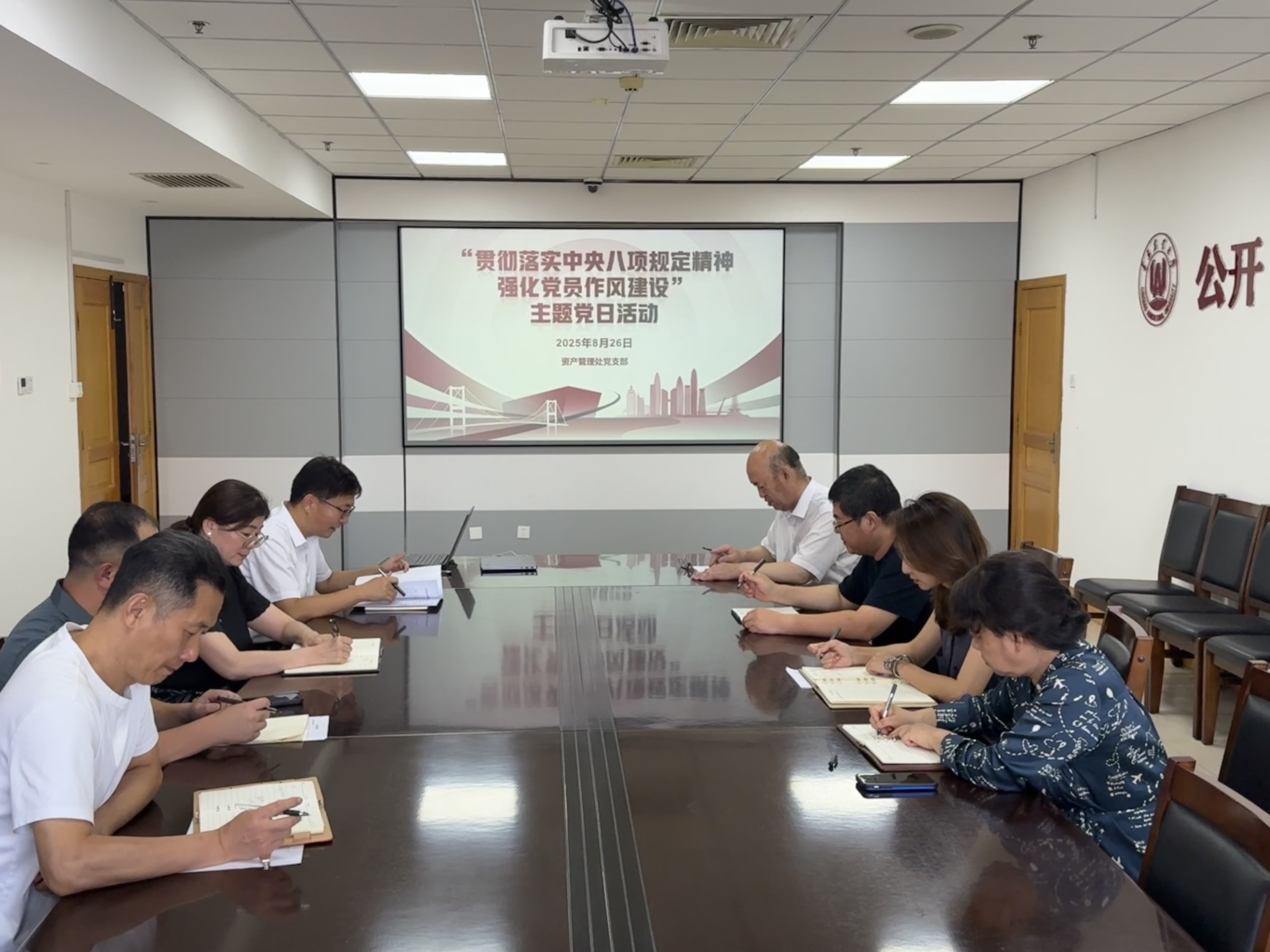 8月26日下午,资产管理处党支部开展“贯彻落实中央八项规定精神,强化党员作风建设”主题党日活动,传达学习学校党委《中共山东省党委党的建设工作领导小组转发<中央党的建设工作领导小组关于认真学习习近平总书记重要讲话精神进一步抓紧抓细深入贯彻落实中央八项规定精神学习教育的通知>的通知》。活动中,全体党员干部集中学习了通知的具体内容,深刻领会了中央八项规定精神的重要意义和具体要求。党支部书记许金东强调,全体党员干部要提高政治站位,充分认识到贯彻落实中央八项规定精神是加强党的建设、推进全面从严治党的重要举措,要将其融入到日常工作和学习中,切实增强纪律意识和规矩意识。