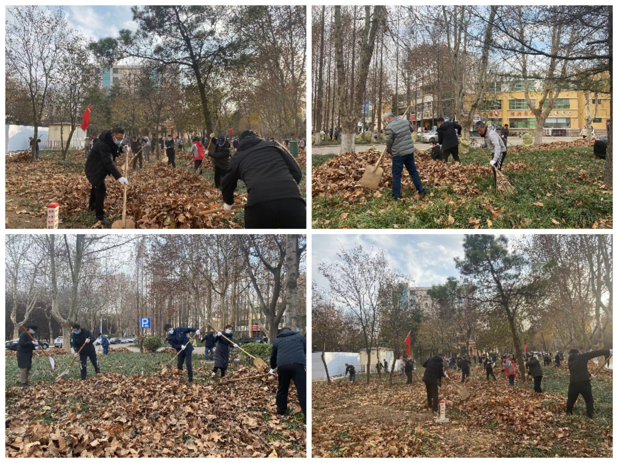 12月2日,后勤保障处党总支联合资产管理处党支部、发展规划与学科建设处党支部39名党员开展“清扫落叶,净化校园”主题党日活动。