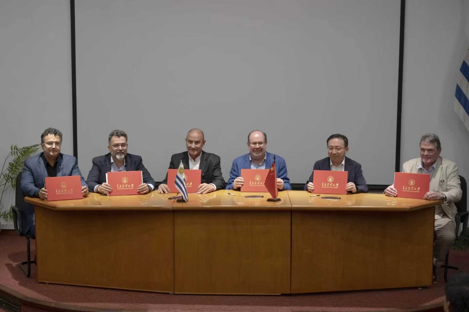 访问乌拉圭国家农牧业研究院、新发展公司期间,赵金山与乌拉圭国家农牧业研究院主席米格尔・谢拉、院长赫拉尔多・马尔凯西尼、新发展公司首席执行官卢卡斯・博尔哈特及相关领域专家学者座谈。围绕中国-乌拉圭草地农业联合实验室共建事宜,双方就实验室科研方向、技术创新路径及产业转化落地等核心议题深入磋商,达成广泛共识,并共同签署《草地农业联合实验室共建谅解备忘录》。该实验室以 “草地农业” 为核心,聚焦饲草生产利用遗传改良与植物生物技术、数字化草地农业研发应用、肉牛育种精准遗传改良三大领域,通过联合研发、技术示范、产业赋能及人才培养,构建低碳农业技术体系,加速先进技术双向转化落地,打造中乌智慧草地农业顶尖合作平台。乌拉圭牧农渔业部副部长马蒂亚斯・卡兰布拉见证签署并表示热烈祝贺。