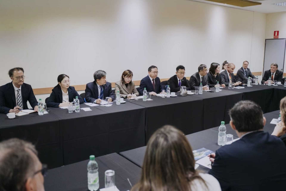 在蒙得维的亚巴斯德研究所、思科富德生物技术公司,赵金山与巴斯德研究所首席执行官卡洛斯・鲍蒂安尼、思科富德生物技术公司首席执行官阿古斯丁・科雷亚等围绕联合实验室建设及科研重点深入交流,详细了解巴斯德研究所牛蜱虫疫苗科研进展,研讨其扩大生产关键技术,并就草原生产系统牲畜追溯数字追踪系统开发展开具体沟通。赵金山还与巴斯德研究所执行主任卡洛斯・鲍蒂安尼签署合作谅解备忘录。乌拉圭总统秘书长派彻・桑切斯见证签署,对双方合作给予高度支持和赞扬。乌拉圭科技创新局、经济部投资局、工业与能源部国家工业局、乌拉圭国有银行等相关人员参加座谈。