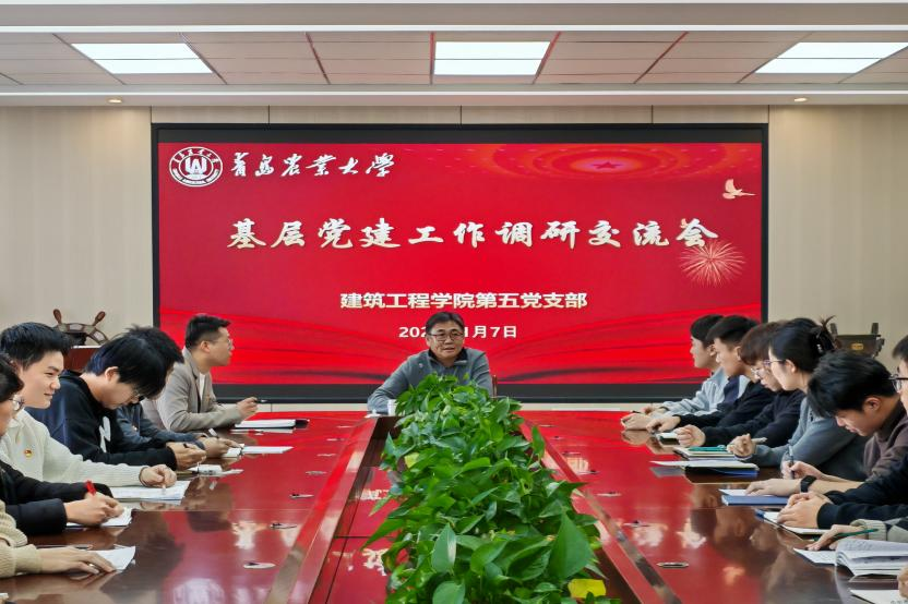 2025年1月7日下午,校党委委员、副校长隋国武到建筑工程学院第五党支部开展基层党建工作调研,学院第五党支部全体党员参会,会议由第五党支部书记刘文庭主持。