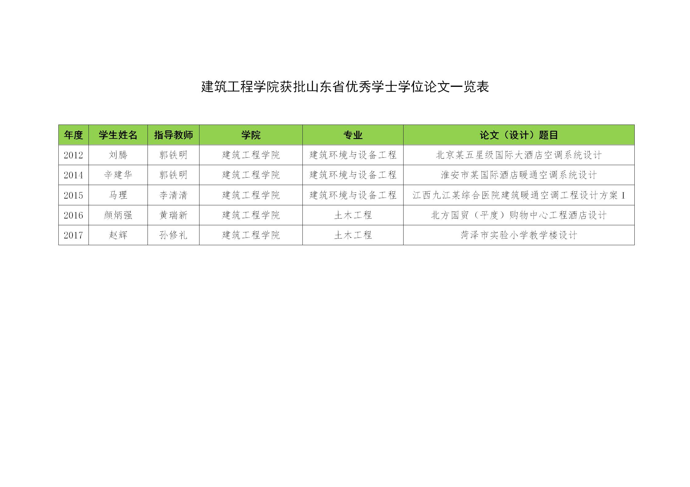 建筑工程学院获批山东省优秀学士学位论文一览表
