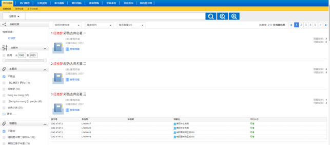 三、点击左上方“书目检索”,进入检索界面,选择检索方式(“馆藏检索”或“简单检索”或“多字段检索”),输入检索词,进行检索。浏览检索结果,选定想要委托借阅的馆藏图书(只能委托馆藏地点为“城阳图书馆”的图书),点击选定的图书,进入图书详细目录界面。
