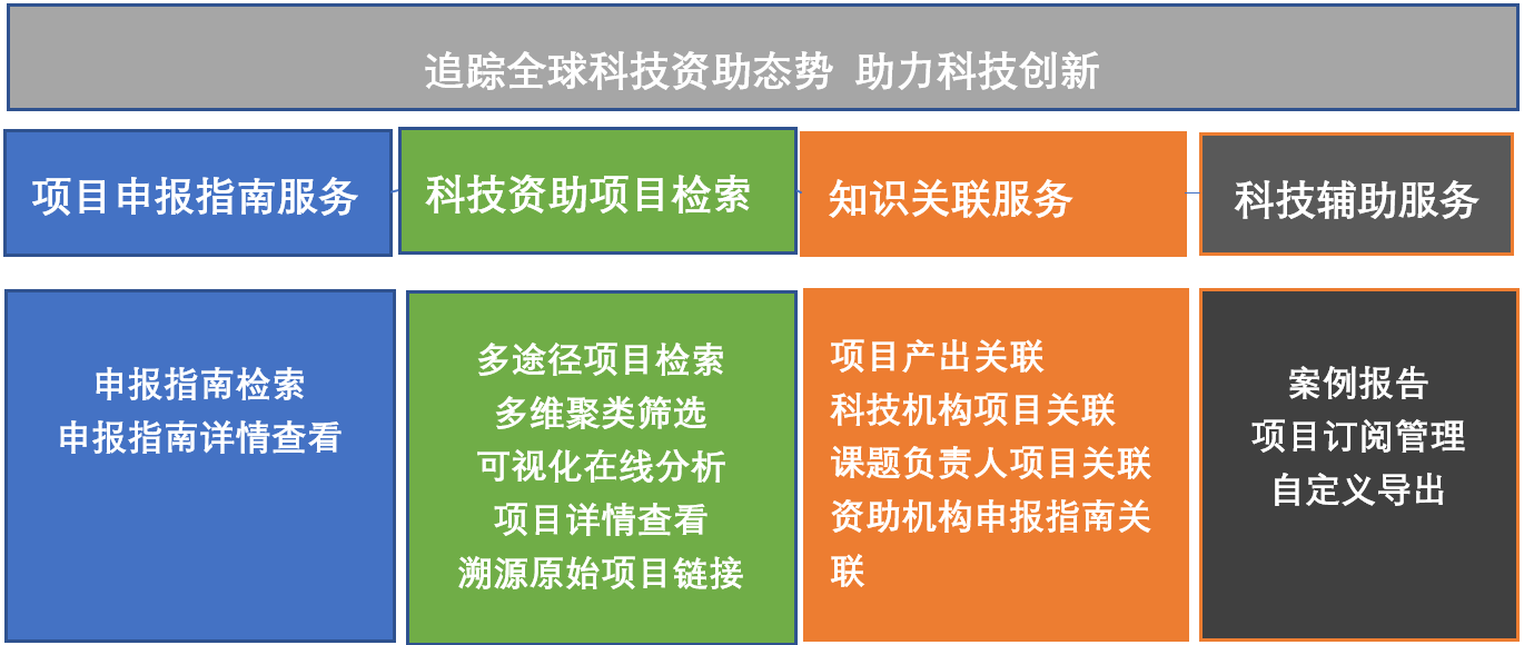 该平台动态追踪、汇聚全球主要科技国家重要科研资助机构历年资助的各类科研项目,涉及了中、美、英、日、澳、加等20多个国家,包涵200多个政府机构/国立科研机构、非营利性组织资助的800多万科研项目,涵盖了理、工、农、医、人文等各学科。在此基础上,平台依托万方数据知识服务平台的各类科技成果资源,逐步实现科研项目与科技成果的关联,拓展科研数据链条,支撑更广泛、深入的科研创新服务。