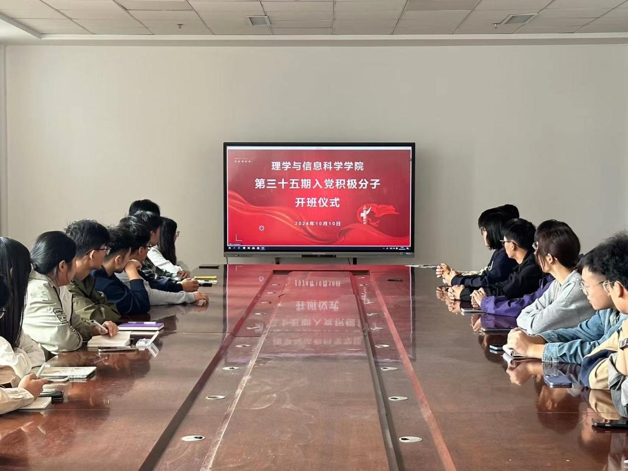 10月10日,理学与信息科学学院在城阳校区信息楼215举行第三十五期入党积极分子开班仪式,平度校区于大学生活动中心201同步进行,学院党委副书记、副院长岳斌,辅导员王玉堃、李温蓉及本期入党积极分子参加。