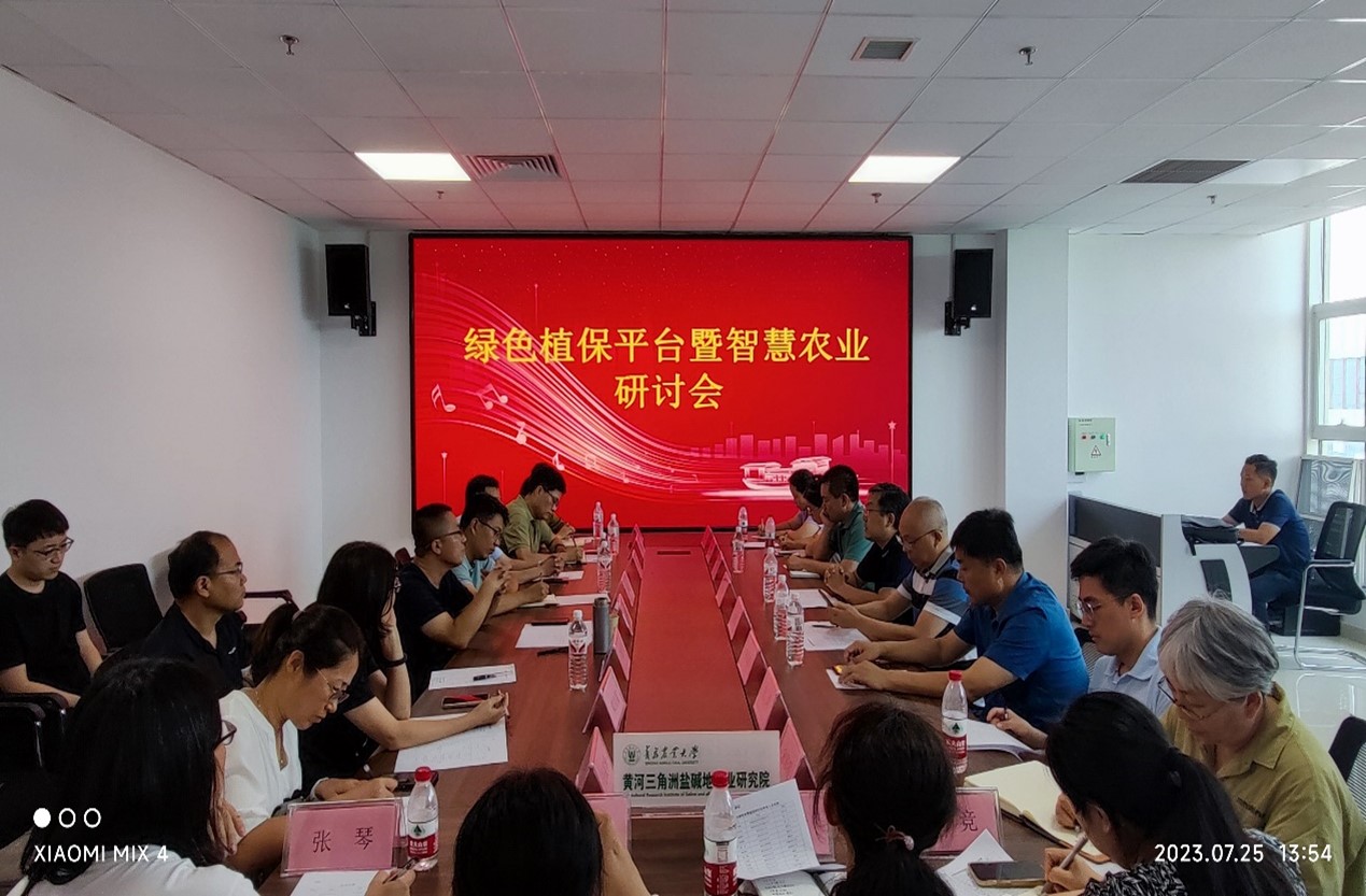 考察结束后,两支团队与韩成刚副院长、植保学院褚栋副院长及东营盐碱地综合利用中心、浙江托普云有关领导和研究人员召开研讨会,围绕黄河口盐碱地的绿色植保、土地改良、病虫害监测预警、植物生长模型、农业大数据分析、农业物联网基础建设等相关课题进行了交流,就目前亟需解决的问题进行了深入的讨论,初步确定了今后合作研究的方向。