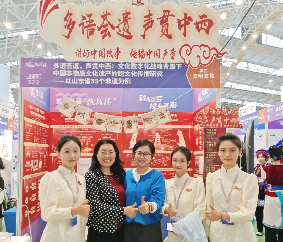 “文化自信是一个国家、一个民族发展中最基本、最深沉、最持久的力量。”国家越来越重视文化传承与传播,致力对外讲好中国故事。作为一名外国语学院的学生,孙梦迪学以致用,基于当前国家背景,以她作为项目第一负责人的《多语荟遗 声贯中西:文化数字化战略背景下中国非物质文化遗产的跨文化传播研究——以山东省39个非遗为例》项目团队积极响应国家号召,基于文化数字化战略背景,以拉斯韦尔传播模式为理论依据,聚焦当下我国非遗对外传播过程中国际友人听不懂、看不懂、记不牢等问题,先后组建36支调研团队历时两年半,前往13个地级市、41个单位,考察调研了39项国家级和省级非物质文化遗产。团队从提升保护度、创新度、影响度三方面入手,进行非遗对外传播的“三度”路径构建,与20所国内外高校共建26门实践课程,组建的翻译宣讲团完成了多语翻译文本约10万字、构建起25万余字的多语语料库,设计39项非遗的多语数字化展示模型、H5介绍页面和多样的非遗游戏,在国外购物平台上出售非遗文创,用外语讲好非遗故事,推动中华优秀传统文化走向世界舞台。