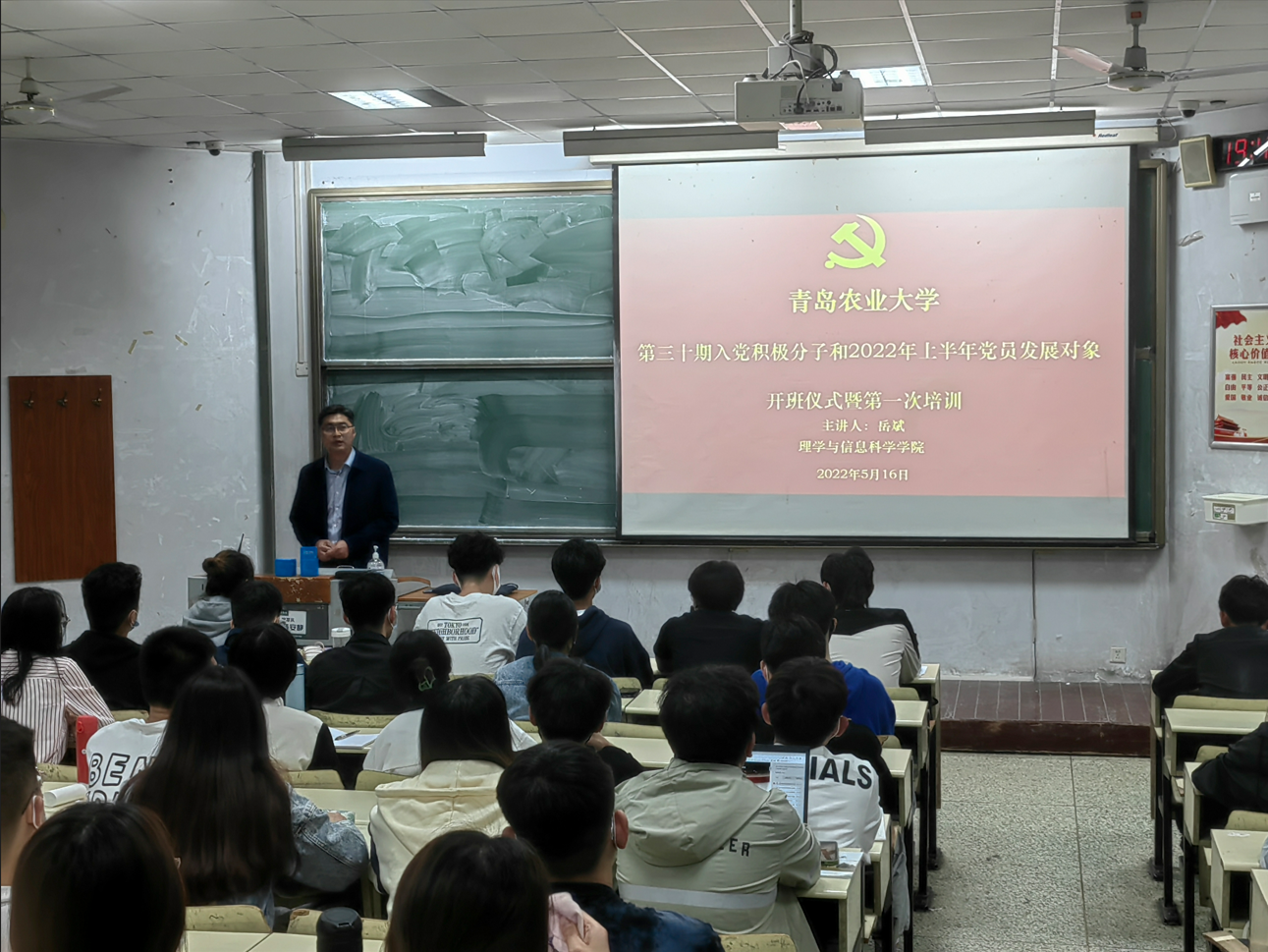 2022年5月16日,taptap点点体彩app下载理学与信息科学院党校第三十期入党积极分子和2022年上半年党员发展对象培训班开班仪式在教学区举行。学院党委副书记、副院长岳斌出席并主持了本次培训班开班仪式,来自城阳校区全院各专业38名党员发展对象和162名入党积极分子参加。