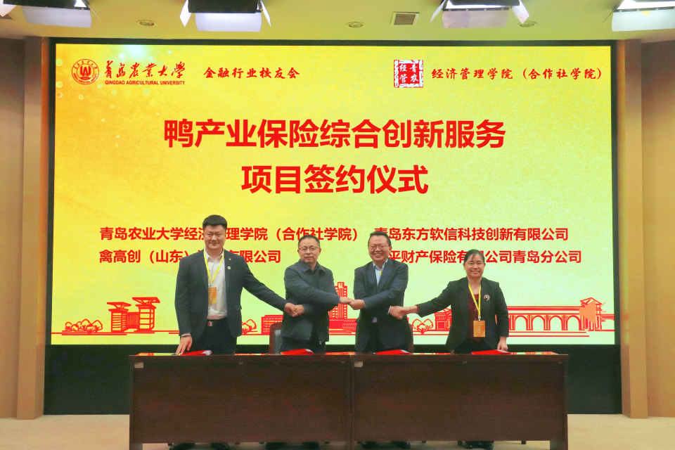 为深化产学研合作,聚焦服务国家乡村振兴战略,大会上,杨明忠与李敬锁共同为“现代农业金融研究院”揭牌。研究院现场签署了“家禽生物性资产确认信贷产品研发”与“鸭产业保险综合创新服务”两项合作协议,标志着校友会在推动金融赋能农业产业振兴方面迈出了实质性步伐。