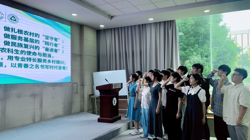 会上,邀请优秀毕业公费农科生代表、资环D2002班赵子月到场进行分享交流。赵子月结合自身扎根基层的工作实际,分享了将专业理论知识转化为田间实践成果的宝贵经验。在互动环节中,班级同学围绕未来职业发展与能力需求踊跃提问,与赵子月展开了热烈探讨与交流。班级团支书袁羽亭全面汇报了前期班级学风建设讨论会的开展情况,系统梳理工作成效,深入剖析现有问题,提出了优化改进措施。班会最后,2023级全体公费农科生庄严宣誓,用铿锵有力的誓言表达了扎根广袤田野、服务“三农”发展、奉献青春力量的坚定信念,立志在基层实践中磨砺本领,书写新时代农科学子的奋斗答卷。