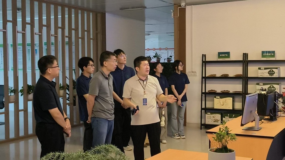 在博华高效生态农业科技有限公司,学院一行深入了解了企业“为城镇碳锁生活汁美赋能”的发展理念,重点考察了其“三产融合、四化循环”的发展模式、生态猪牛肉现代化养殖运营体系以及食用菌智能化培育与循环利用技术。校企双方围绕学科专业与企业项目对接、学生实习实践模式、企业人才需求等方面进行了深入交流,探讨了如何更好地将人才培养与企业实际需求相结合。